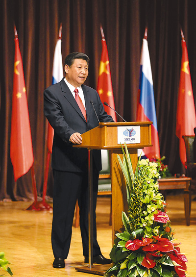 2013年3月,国家主席习近平在莫斯科国际关系学院发表演讲。新华社记者 丁林摄