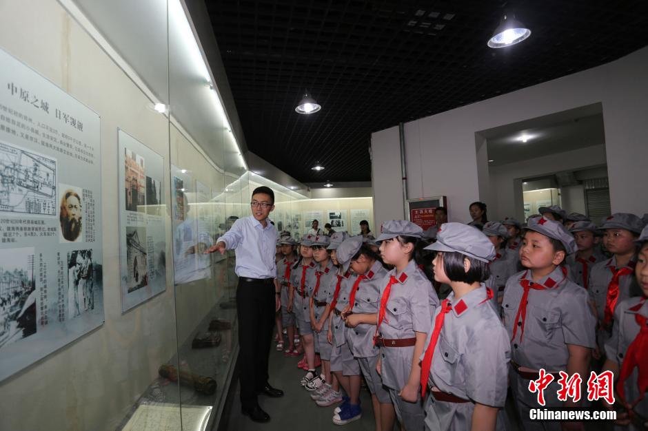 郑州小学生着红军服参观抗战展