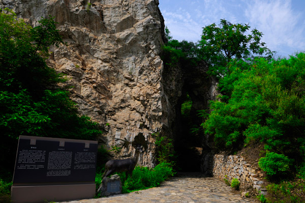这是第4地点。第4地点是一处南北向的洞穴——裂隙堆积,堆积物主要为黄色砂质粘土。1927年发现,1937~1938年进行正式发掘。获得石器和古人类用火的证据灰烬、烧石及烧过的朴树籽以及豺和鹿的化石。