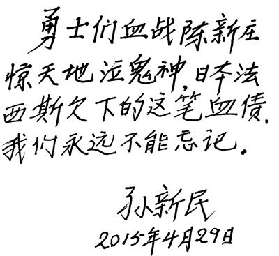 是啊!往事并不如烟。作为那场战斗的幸存者,想起那些倒在眼前的战友,这些年来,我常常夜不能寐。烈士们的壮举惊天地泣鬼神,他们虽死犹生。日本法西斯欠下的这笔血债,我们永远不能忘记。