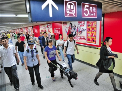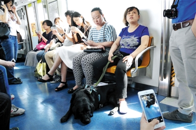 去年11月,《北京市轨道交通运营安全条例》经人大常委会表决通过,2015年5月1日起,视力残障者出示视力残障证件和导盲犬证,可携带导盲犬进站乘车。