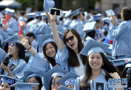 5月20日,美国哥伦比亚大学举行第261届毕业典礼,约15000名毕业生参加仪式,其中包括近600名中国学生。据“开放门户”统计,在2013至2014学年,被美国高等教育机构录取的中国学生人数从上一学年的235597人增加到274439人,增幅达16.5%,中国在所有派遣赴美留学生的国家中仍居第一位,其人数占美国国际生总数的31%。