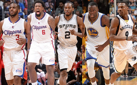 北京时间5月21日,据NBA官网报道,联盟今天正式公布了本赛季最佳防守阵容,圣安东尼奥马刺队的年度最佳防守球员考瓦伊-莱昂纳德领衔最佳防守一阵。除了莱昂纳德之外,另外四名入选最佳防守一阵的球员分别是:德雷蒙德-格林(勇士)、托尼-阿伦(灰熊)、德安德烈-乔丹和克里斯-保罗(快船)。