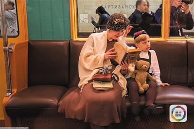 日前,莫斯科地铁公司为纪念城市地铁运营80周年,推出“时光机”主题列车展。当乘客置身于古老的地铁车厢,身着苏联时期衣服样式的乘客穿梭在身边,会有一种穿越时空的感觉。地铁公司专门邀请了苏联时期著名播音员伊戈尔·基里洛夫录制列车广播。