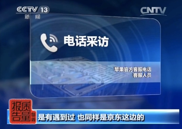 对于京东的说法,苹果官方给出了截然相反的答复。苹果客服人员告诉央视记者,京东售卖的苹果手机虽然有可能从厂家第一手渠道拿到,但是中间转了几手再卖给消费者,就是在中间环节可能已经就出现了问题。