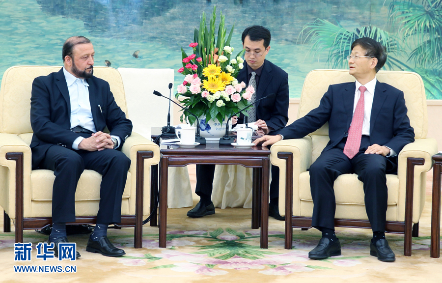 5月26日,中共中央政治局委员、中央政法委书记孟建柱在北京会见由总书记阿西姆率领的阿富汗民族联盟代表团。 新华社记者姚大伟摄