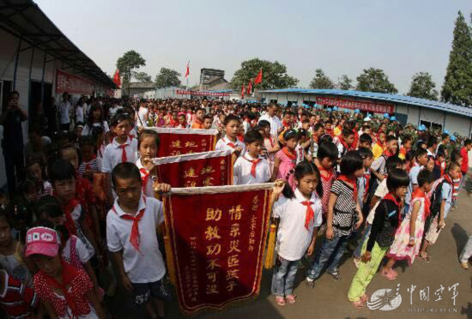 2008年“5.12”汶川大地震后,空降兵部队上万名官兵飞赴前线,在余震不断中冒死抗灾救人。3个多月后当部队踏上归途时,许多孩子举着“长大我也要当兵”的牌子为官兵送别。