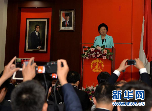 5月27日,正在对印度尼西亚进行正式访问的中国国务院副总理刘延东在印度尼西亚大学发表题为《深化人文交流共育中印尼友谊常青树》的演讲。 新华社记者贺长山摄