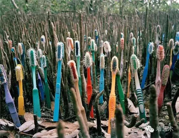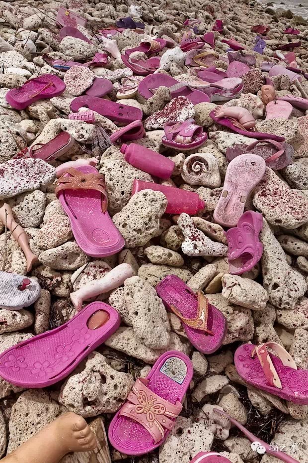 Duran就是在用这个艺术项目来说明,全球海洋污染已成为灾难性问题,这种美其实在刺激你的内心。当垃圾侵入自然,这样的风景还美吗?(来源:“墙艺术”公号)