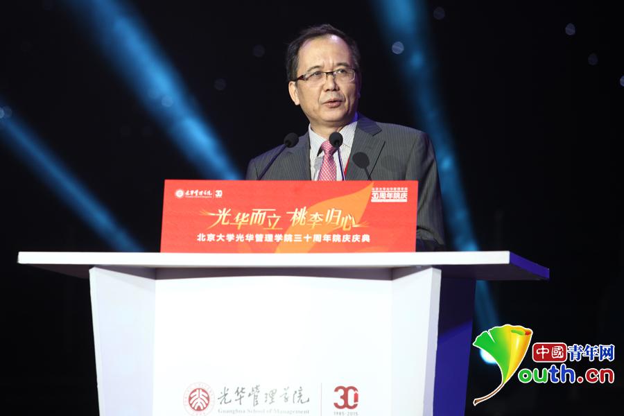 在过去30年,光华管理学院走过了一段辉煌又令人惊奇的发展历程。1985年在厉以宁教授的带领下,北京大学成立了经济管理系,1993年经济管理系和管理科学中心合并建立了北京大学工商管理学院。1994年,在台湾著名的企业家尹衍樑先生的推动和支持下,光华教育基金会向学校捐助了办学基金,学院更名为光华管理学院。经过几代光华人辛勤的努力,光华管理学院已经发展成为当今中国商学教育的一面旗帜,成为亚太地区最优秀的商学院之一。“饮水思源,方能生生不息”,我们深知光华管理学院取得的成就离不开前辈的艰苦创业,离不开广大师生、员工、海内外校友的团结奋斗,也离不开社会各界朋友长期以来的关心、帮助和支持!在此,我再次代表学校向以厉以宁先生为代表的、为光华管理学院的发展作出突出贡献的前辈、老师们致以崇高的敬意,同时也向学院广大师生员工、海内外校友以及各界朋友表示衷心的感谢!
