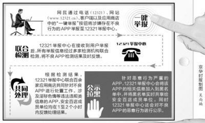 同时,中国互联网协会12321举报中心组织手机应用商店自查自纠,联合广大手机应用商店共同抵制恶意手机应用软件。截至4月底,共有106家手机应用商店加入“安全百店”行动,共接到手机应用软件有效举报879万件次,下架APP4万余款。