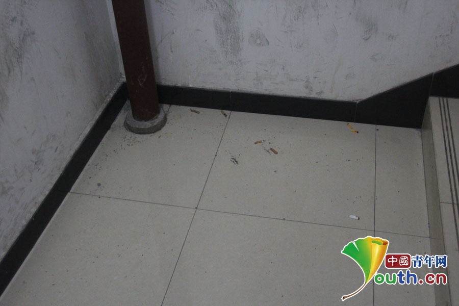 某写字楼办公区禁止吸烟后,楼道成了烟民的新据点。中国青年网记者 孟畅摄