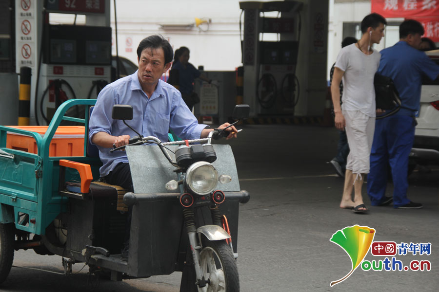路人手拿香烟走过加油站门前。中国青年网记者 孟畅摄