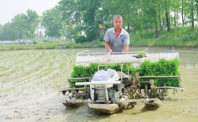 “机械插秧省钱还省力!”程河镇邓岗村6组农民陈定忠说。陈定忠今年种植水稻23亩。过去,用人工插秧,需要请15个人,2天时间才能插完,需要工钱3000元,中午还要管饭。现在用机械插秧,2台插秧机半天就可以插完,每亩工钱45元,仅需1035元。