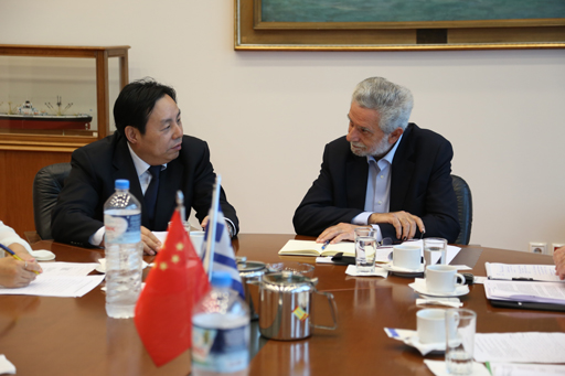 在访问希腊海运部期间,房建孟与德雷萨斯部长进行了会晤。他首先转达了国家海洋局王宏局长的问候,双方就深化海洋领域的合作,以及“中希海洋合作年”期间相互配合,开展一系列海洋领域的重要合作交流活动交换了意见。房建孟表示,希腊是文明古国,是海洋文明的发源地。中希两国合作关系良好。“中希海洋合作年”是中国第一次与外国以海洋为主题举办得双边友好年,意义十分重大。国家海洋局将在“中希海洋合作年”期间,加强与希腊海运部等海洋管理部门的合作,开展海洋科技、海洋人文和海洋经贸等领域的合作与交流,谋划好、筹备好“第二届中希海洋合作论坛”等重要活动。德雷萨斯对中国代表团表示热烈欢迎。他强调,中国代表团参加“欧洲海洋日”具有重要和积极的意义。希腊政府高度重视“中希海洋合作年”,珍惜这一良好的契机,希望与中国开展更广泛的海洋合作,并加强双方在海洋国际组织框架下的相互合作与支持。他建议双方在今年9月召开中希海洋合作联合委员会第一次会议。