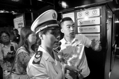 执法人员在海底捞白家庄店开出首张整改通知书。京华时报记者王海欣摄