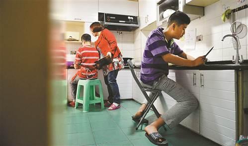 2015年4月2日,渝中区助力社会工作服务中心,轩轩和同学正在为午餐切洗蔬菜。在学校,老师时常会安排一些适合的事给孩子们做。