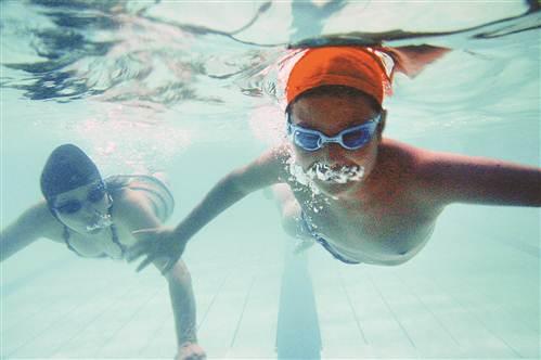 2014年8月12日,奥体中心的泳馆,余中华陪着轩轩学习游泳。