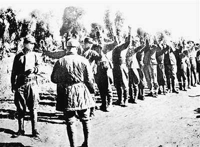 1945年,鲁南铁道大队在枣庄沙沟接受日军投降。资料图片
