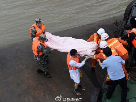 6月2日,救援人员在沉船现场救起一名幸存者。 (新华社记者 肖艺九摄)