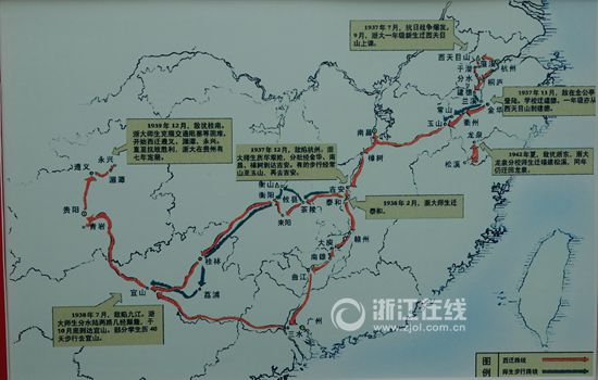 抗战时期浙大西迁示意图