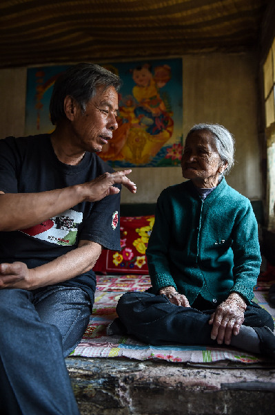 盂县西烟镇西村的一户农家,张双兵正在与曾经不幸成为侵华日军“慰安妇”的张先兔老人聊天