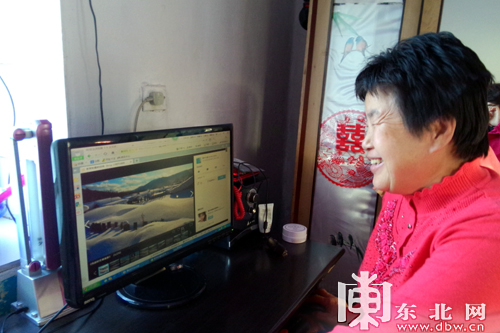 “威虎山雪村”家庭旅馆经营者胡秀英用互联网向外界发布家乡美景。