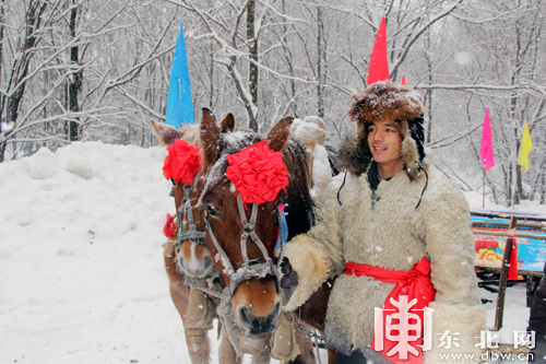 自打“威虎山雪村”开门营业,林场职工郝运双和他的两匹马就忙得“脚打后脑勺”。2014年木材停伐后,郝运双投资2万多元,成为雪村第一家“马拉爬犁”。穿着羊皮袄,带着狗皮帽子,浓眉大眼,热情朴实的郝运双驾着他的马车扬鞭疾驰,成为游客到雪村必选的特色游乐项目,每天不菲的收入让郝运双干劲儿十足。