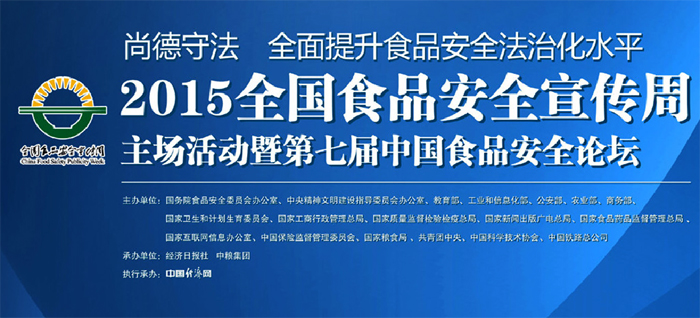 2015年全国食品安全宣传周活动将于6月15日上午正式拉开帷幕(至7月2日结束)。国务院食品安全办等18部门将联合举行宣传周主场活动暨第七届中国食品安全论坛。