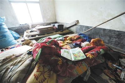 昨日,毕节4名死亡留守儿童生前居住的房屋内,被褥上留有孩子的课本。6月9日,这4兄妹在家喝农药死亡。新华社记者 陶亮 摄