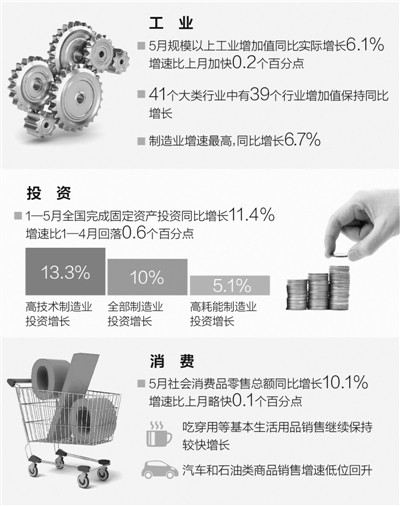 解码5月份经济:工业小幅回升 下行压力仍大