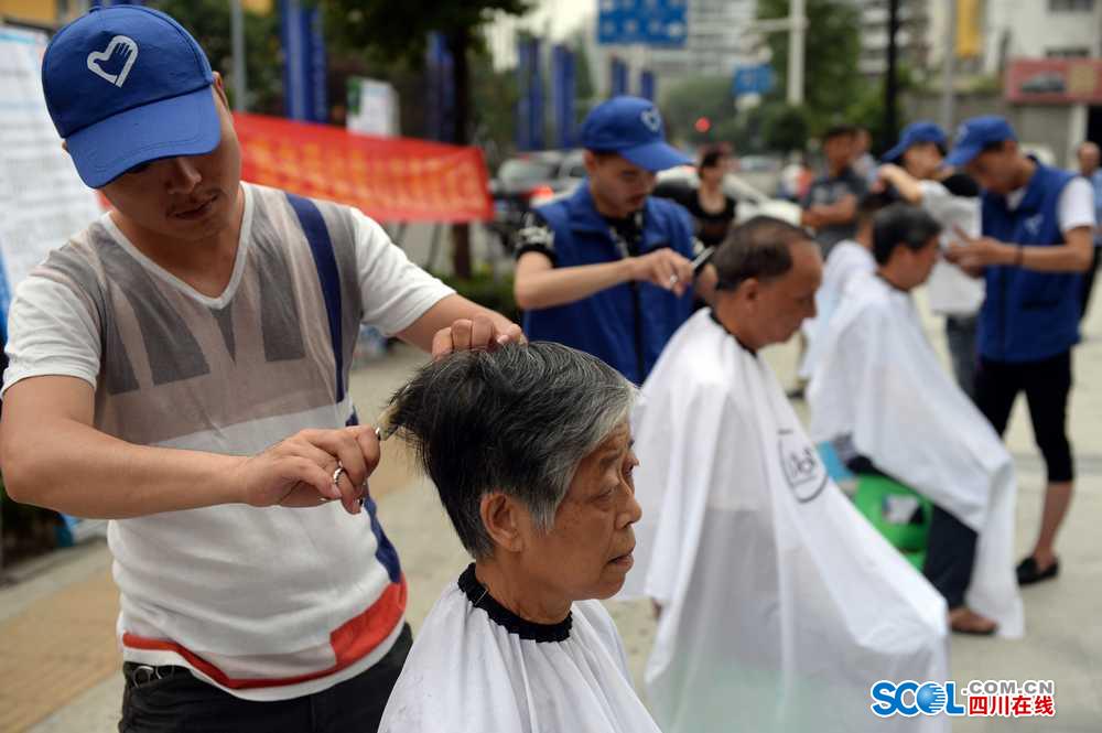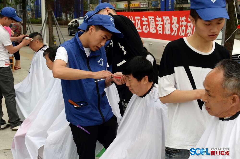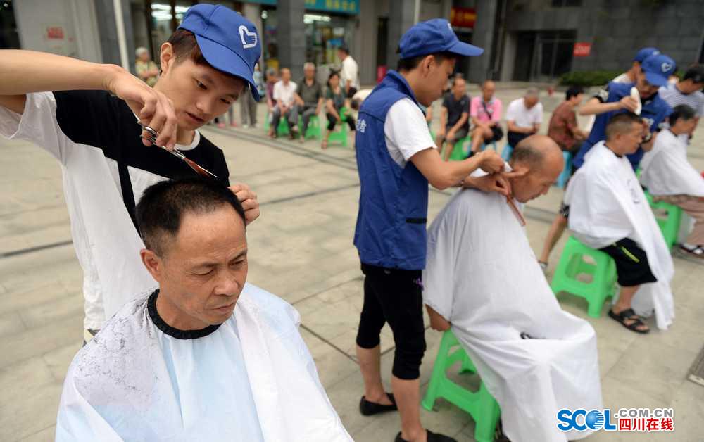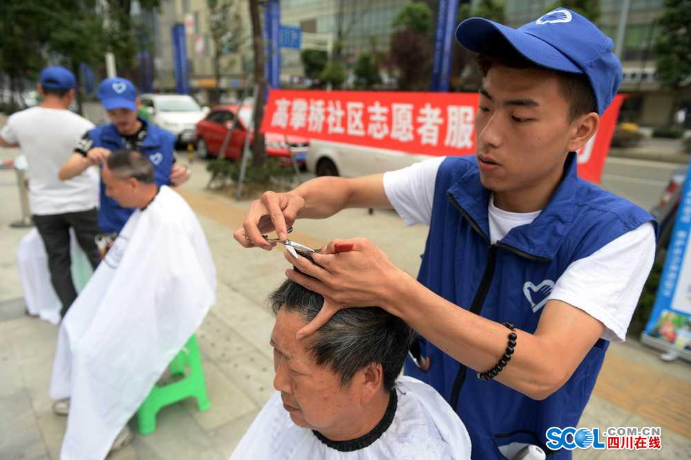 6月11日是成都市武侯区火车南站街道办事处高攀桥社区的“爱心义务剪发日”,来自该社区的爱心理发店的理发师义务为社区居民理发,当天86名居民享受到免费理发的服务。