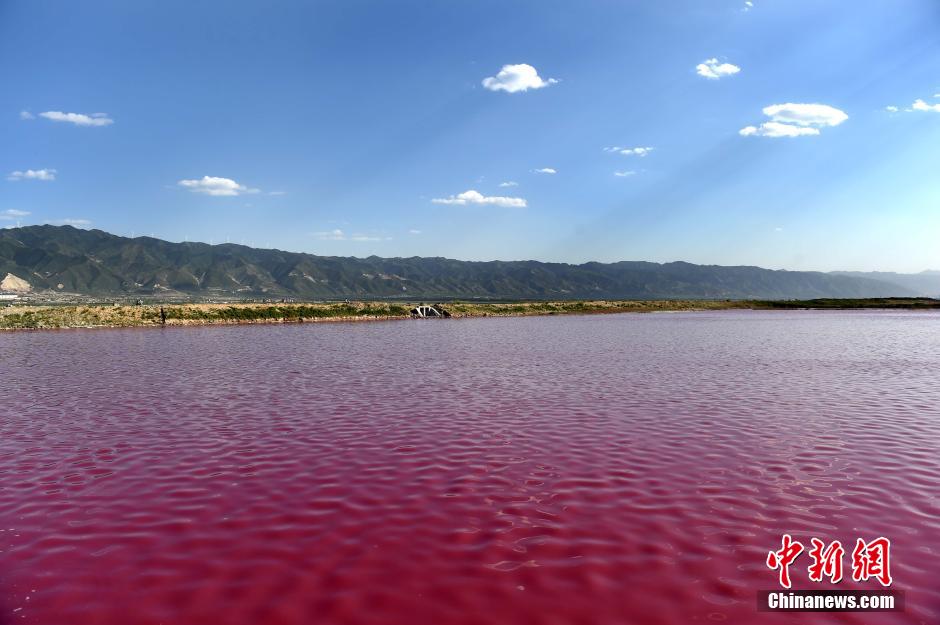 山西运城盐湖变红色成“玫瑰湖”