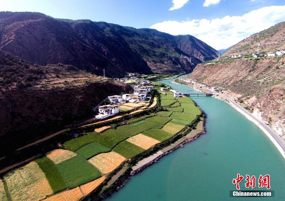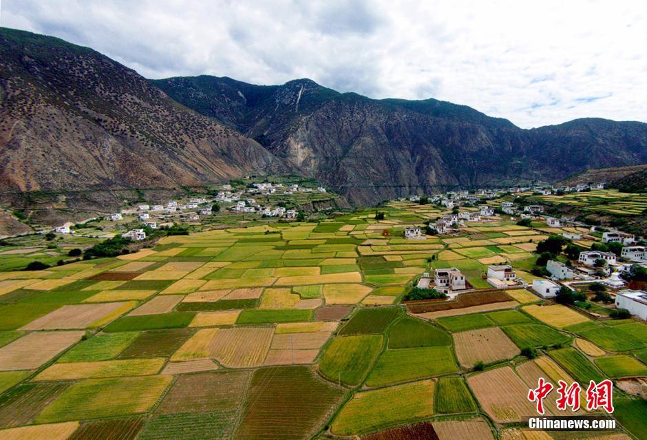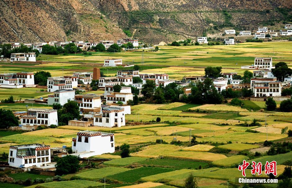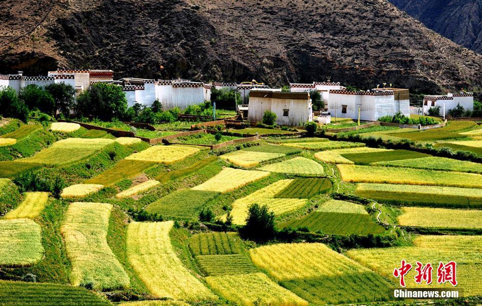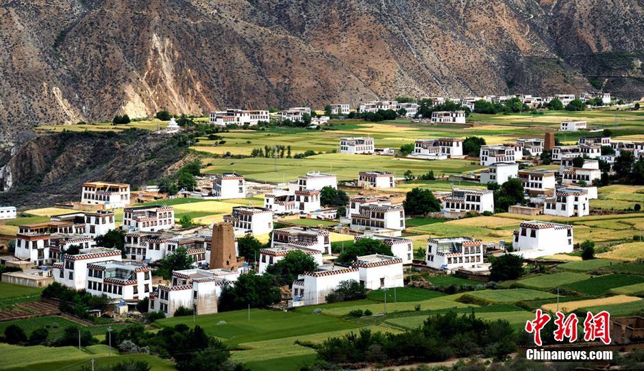 6月4日,四川甘孜州乡城县田间的青稞渐渐进入成熟收割的季节,镶嵌在田野中的白藏房犹如一颗颗闪亮的珍珠,别具一格。