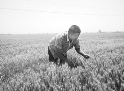 图为段希林在查看即将成熟的小麦。