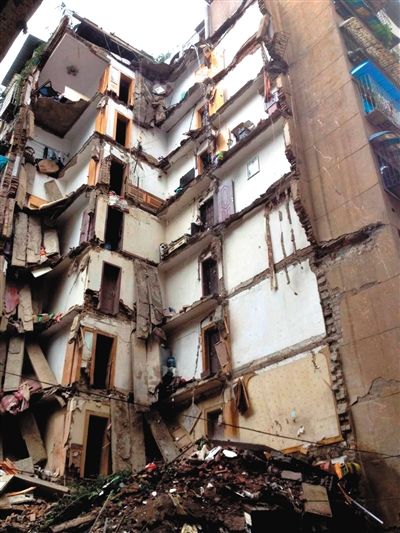 昨日,贵州遵义一栋9层老旧居民楼发生局部垮塌。图/CFP