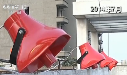 2014年8月13日中午,在历经43天的喇叭大战后,都市丽景小区楼顶的14个喇叭被居民自愿拆除。