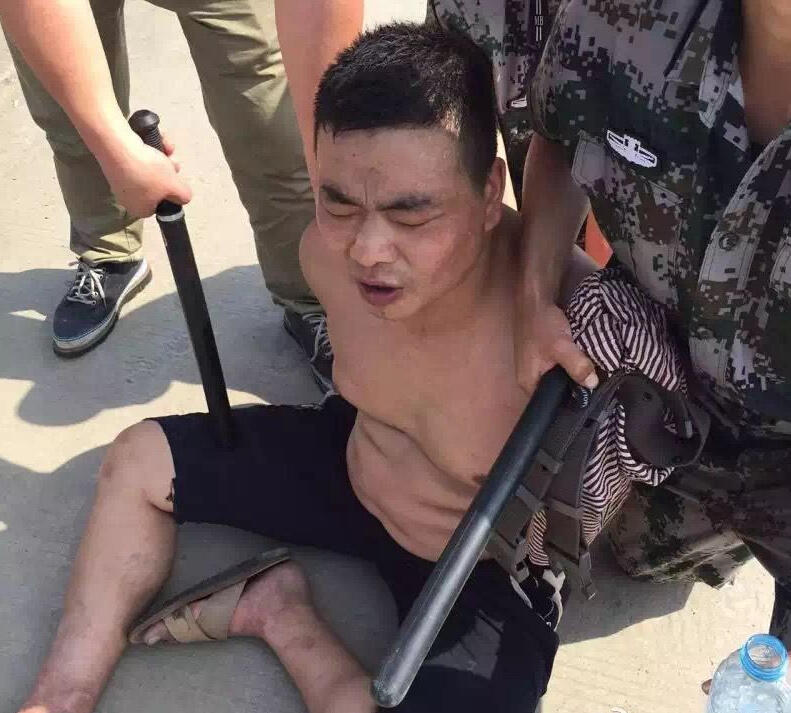 犯罪嫌疑人陈国勤被警方抓获现场图。