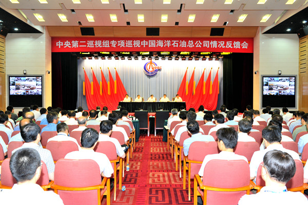 中央第二巡视组向中国海洋石油总公司反馈专项巡视情况(中央纪委监察部网站 张祎鑫 摄)