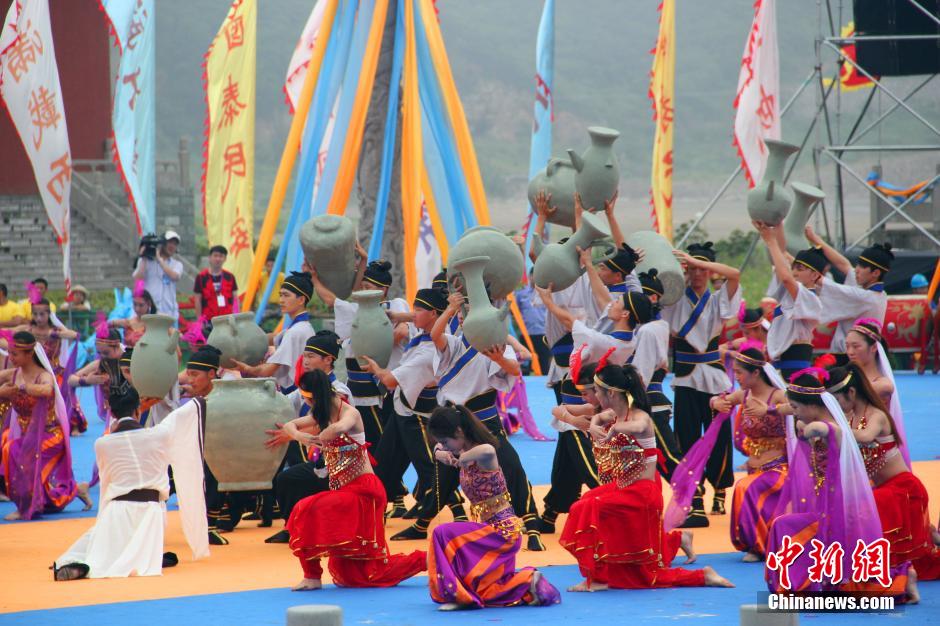 6月16日,2015舟山群岛·中国海洋文化节开幕式——休渔谢洋大典在岱山鹿栏晴沙海坛拉开帷幕,岱山祭海文化品牌再次向世人传达了海岛人感恩海洋、人与自然和谐相处的理念。本届休渔谢洋大典,以“感恩海洋人海和谐”为主题,分为开幕仪式、祭祀仪式和歌舞谢洋三个部分。中新社发 林波 摄