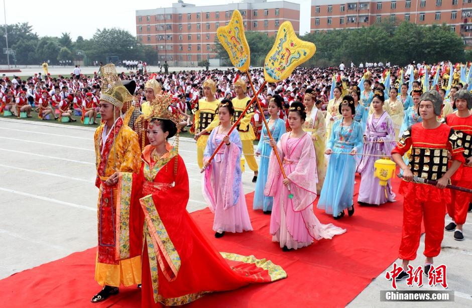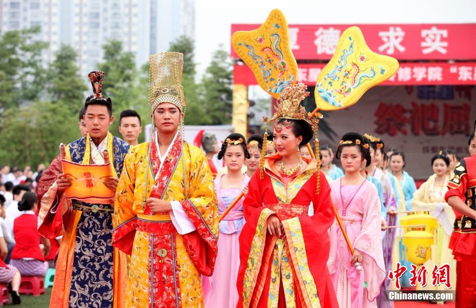 “路漫漫其修远兮,吾将上下而求索”。6月18日端午前夕,为纪念伟大诗人屈原,成都东星航空专修学院120名同学身着古装,表演了优美的歌舞《采薇舞》,情景再现了战国时期战士们浴血奋战之景《战旗舞》,同时还展现了“包粽子、喝黄酒、贴窗纸、划龙舟”等纪念屈原的传统民俗活动场景。陈东欣 摄