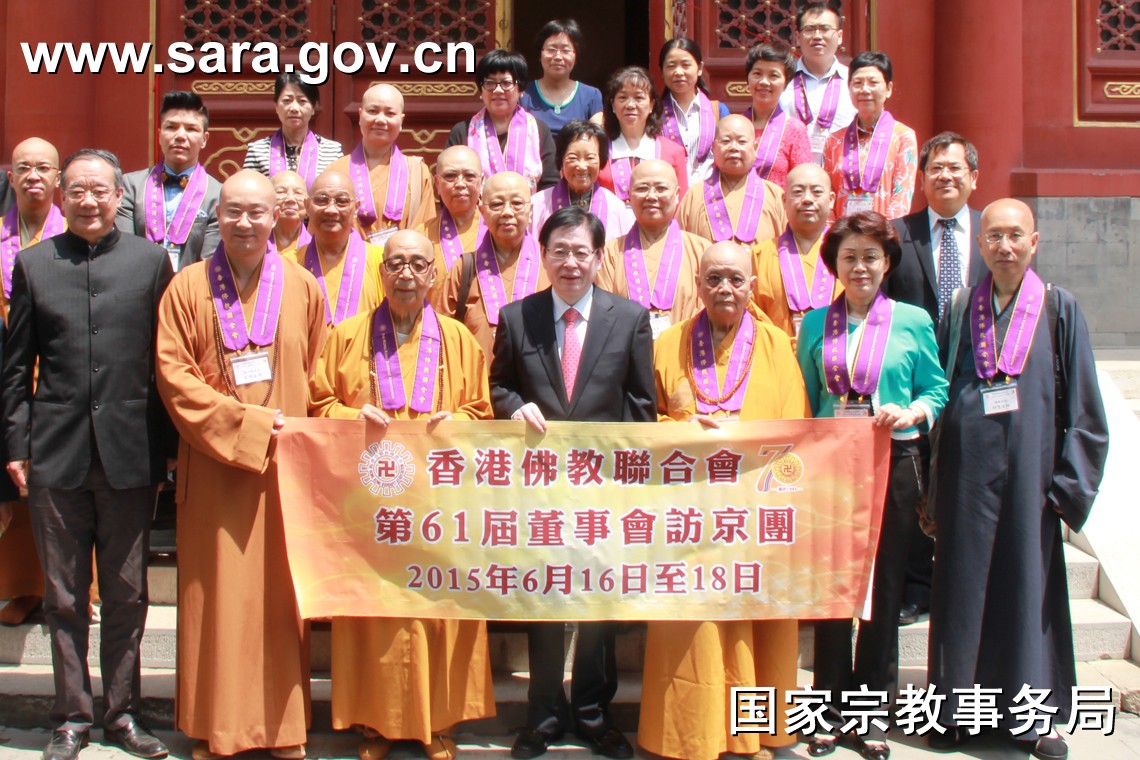 6月17日上午,王作安局长会见了香港佛教联合会会长智慧长老率领的访问团一行。