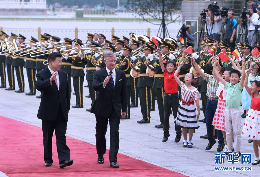 6月23日,国家主席习近平在北京人民大会堂同比利时国王菲利普举行会谈。这是会谈前,习近平在人民大会堂东门外广场举行仪式,欢迎菲利普访华。新华社记者 庞兴雷 摄