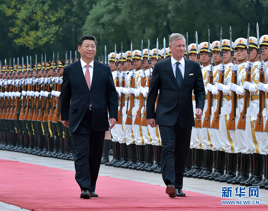 6月23日,国家主席习近平在北京人民大会堂同比利时国王菲利普举行会谈。这是会谈前,习近平在人民大会堂东门外广场举行仪式,欢迎菲利普访华。新华社记者 庞兴雷 摄