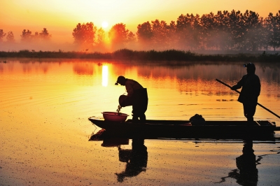 稻虾共作,稳粮增收。捕虾时节,虾农凌晨3点就要“打灯”下田捕虾,是最辛苦也最快乐的日子。图为虾农清晨归来“虾满仓”的情景。