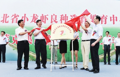 6月13日,湖北省小龙虾良种选育繁育中心揭牌暨湖北莱克集团院士专家工作站授牌仪式在潜江高场办事处举行。该中心的建成将有效解决困扰多年的小龙虾苗种瓶颈,为小龙虾产业可持续健康发展奠定基础。