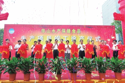6月14日,华山水产保健食品生产项目竣工投产仪式在潜江举行。省人大常委会副主任王玲、省人大农委主任刘田喜、省农业厅厅长戴贵洲、农业部渔业渔政管理局局长赵兴武等出席仪式。该项目是小龙虾产业链继甲壳素精深加工之后的再一次纵向延伸,是小龙虾产业的再一次提升。