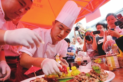龙虾节举办“小龙虾烹饪技能大赛”,来自潜江市内外的100多名大厨参赛。田永祥摄