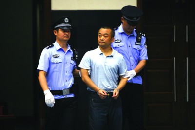 9点20分,审判长敲响法槌,宣布开庭。在法警的看护下,丁传圣走入法庭内。他的个头不高,步履平缓,扭头朝旁听席看了一眼,随后在被告席前站立,开始接受审判。