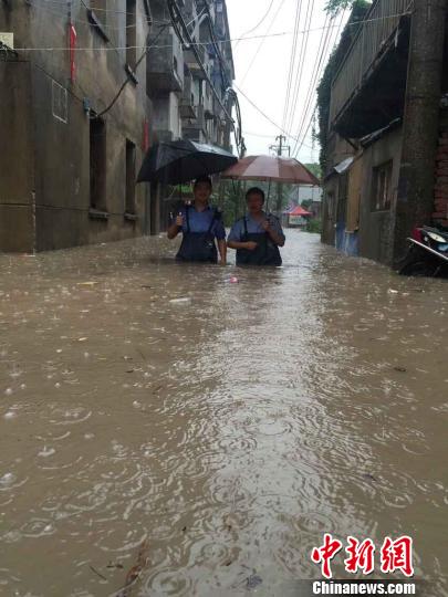 位于城市中心位置、夫子庙的江苏省级文保单位将百万故居内,也已经是“水帘洞”一般,由于地势低洼,外面的积水内灌,让屋内水位很快达到成人的小腿位置,约50cm深,该市城管队员紧急出动排水救援,经过五个小时,将故居内的积水排干。